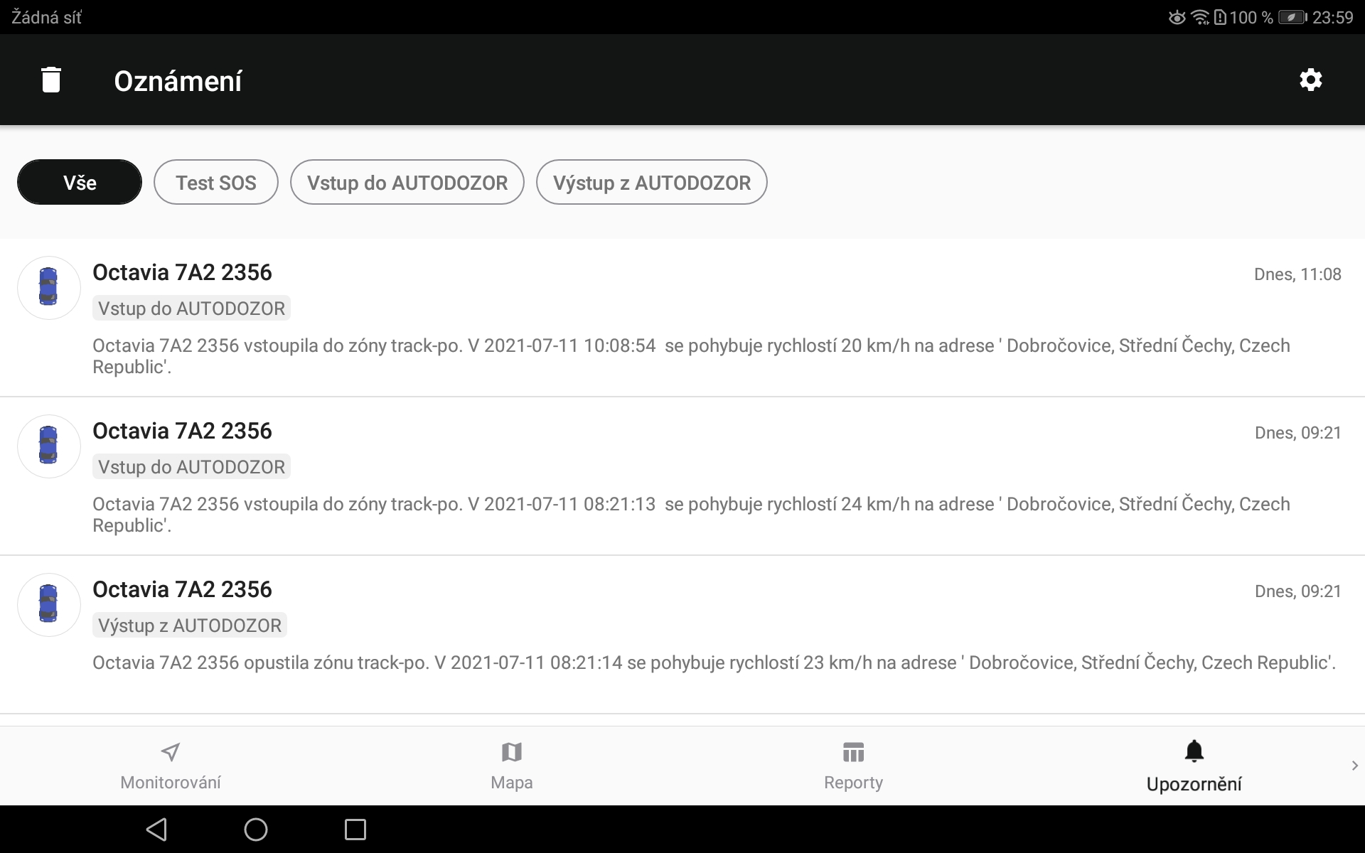 Ať už je to kontrola paliva, jízda v neobvyklé době, opuštění oblasti nebo byly otevřeny dveře, náš systém okamžitě pošle zprávu určeným osobám.